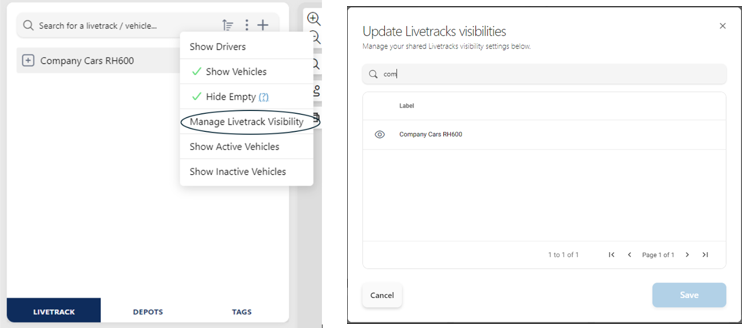 The livetrack widget has been updated to allow users to have more control over which livetrack collections are visible. This means that even if a livetrack collection has been shared with a user, it is still fully configurable at user preference level if the livetrack is visible or not within the tool. This means that users can configure their view to only show relevant vehicle groups and allows for a tidier user experience.